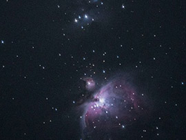 ▲オリオンの小三ツ星にあるオリオン大星雲