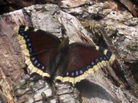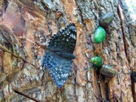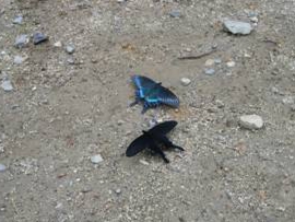 ▲吸水に来たミヤマカラスとオナガアゲハ